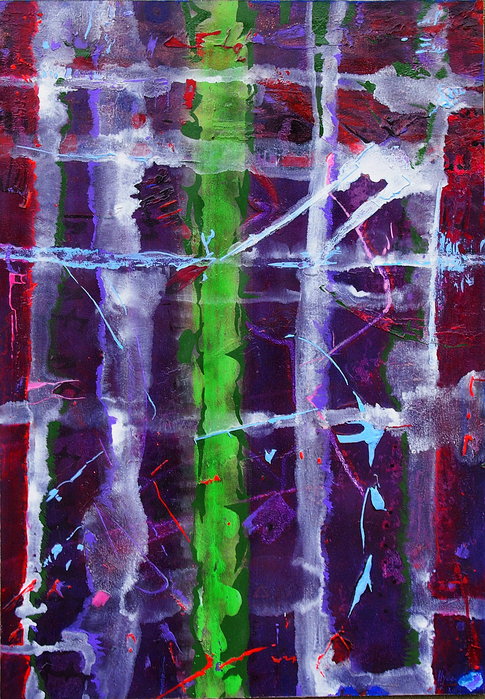 it is an abstract painting made with a mixed tecnique using gesso, acrylic and enamel colors. It is a medium size painting it measures 70x100 cm and it was made in my atelier in Barbarano Vicentino via Europa 42 36021 Italy