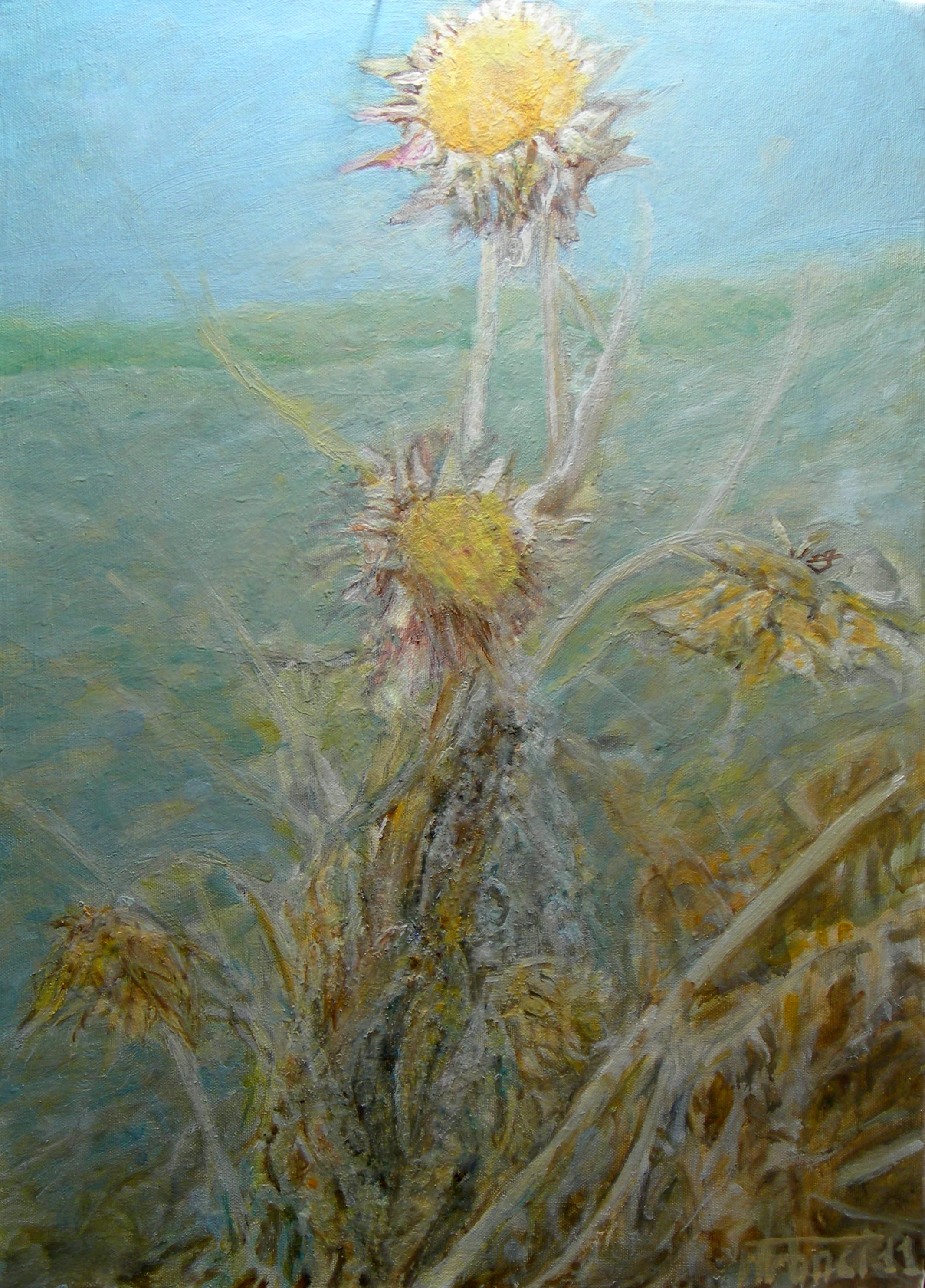 L'opera rappresenta il fiore di carciofo nella fase avanzata di appassimento, in attesa, conformemente al suo ciclo vitale, del risveglio vegetativo. L'opera è stata ammessa al"Primo premio di creatività" Casa Editrice EA con la seguente motivazione critica a firma di Paolo Levi "...ammessa per l'ottimale fattura compositiva che dona all'intento compositivo un eccelso valore artistico" e pubblicata sulla rivista "Effetto Arte"