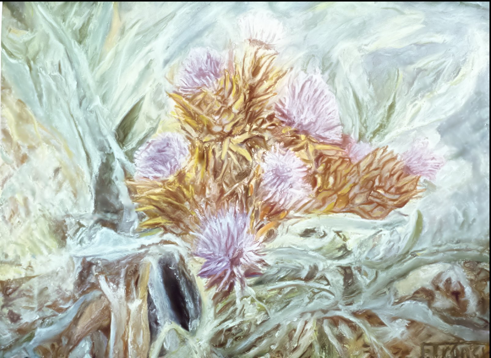 F.T con i suoi oli a cielo aperto, con i suoi paesaggi solari, con i suoi fiori di cardo, si trova ad avere , non certo per divinazione, il ruolo del portatore sano di un passato pittorico assurto a omeopatia del presente ...... dott. Donato Conenna