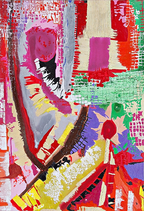 it is an abstract painting made with a mixed tecnique using gesso, acrylic and enamel colors. It is a medium size painting it measures 70x100 cm and it was made in my atelier in Barbarano Vicentino via Europa 42 36021 Italy