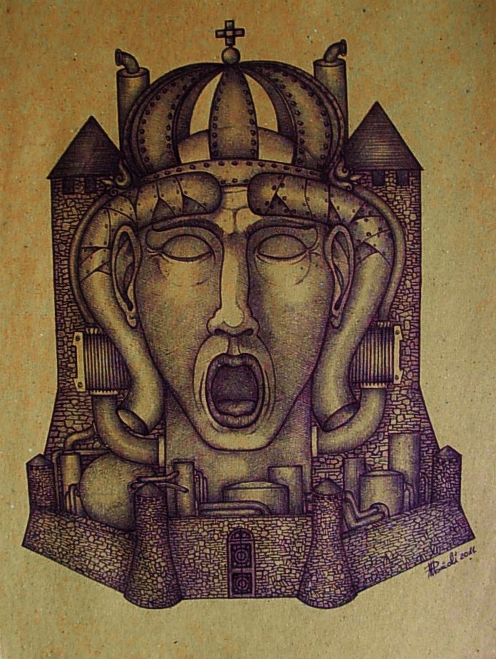 Penna a sfera su carta-paglia cm 33x25