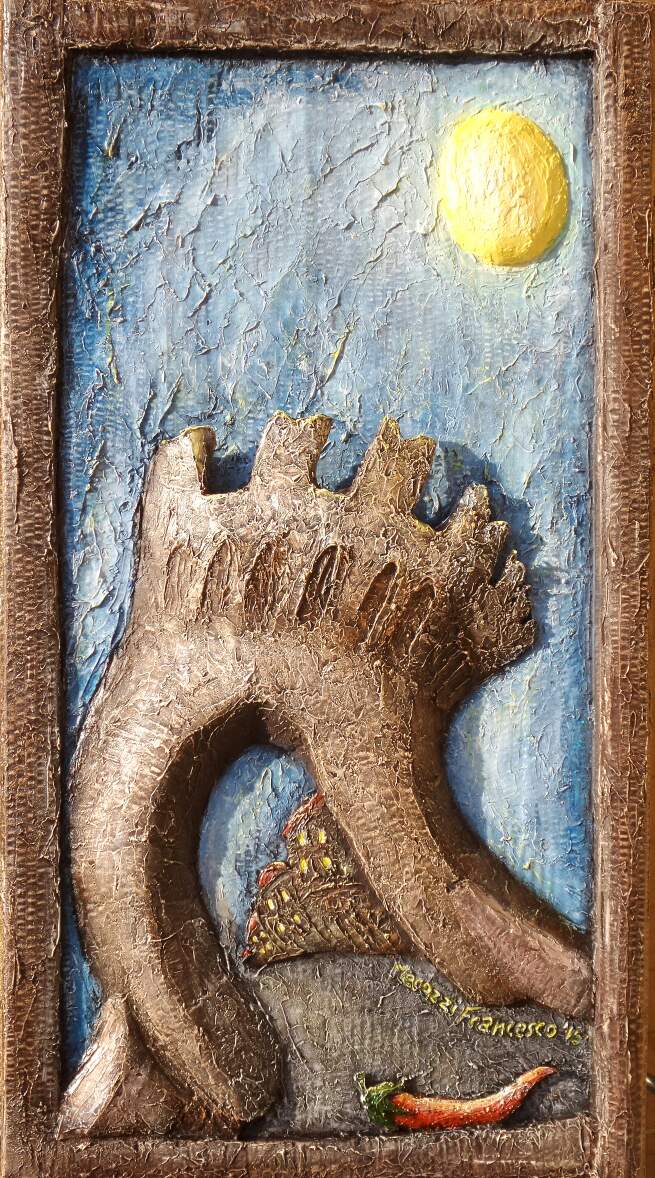 Opera in altorilievo realizzata con tecnica mista su cartone