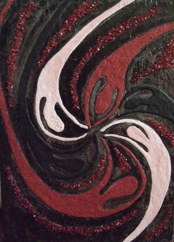 Acrilico, sabbia, scaglie di vetro su tela 50x70