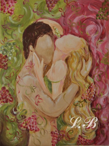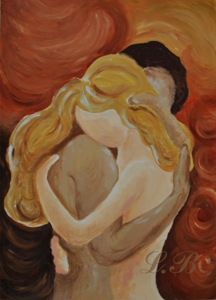 Una coppia di amanti, assorta in un intenso abbraccio comunica ad un livello interiore ed emozionale. I corpi esprimono sentimenti profondi tramite la morbidezz