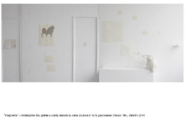 Fragmenta? รจ un'installazione composta da disegni e piccoli oggetti. Personaggi surreali e figure di volatili di diverse specie sono cuciti e scuciti in una ma